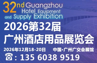 第三十二届广州酒店用品展览会是由广东佛兴英耀展览服务有限公司主办。于2026年12月18-20日在中国进出口商品交易会琶洲展馆(即广交会展馆)。本届展览会展览面积28万平方米,参展企业4000多家,展品范围包括厨房设备、陶瓷餐具、玻璃器皿、餐具包装、清洁设备、大堂用品、客房用品、酒店家具、酒店智能、食品饮料、餐饮食材、预制菜等酒店用品门类的上下游全产业链。预计展会期间观众人数像往年一样,每天有10多万国内外的观众前来参观订货。本届展览会是国内外酒店用品行业的一个盛会。